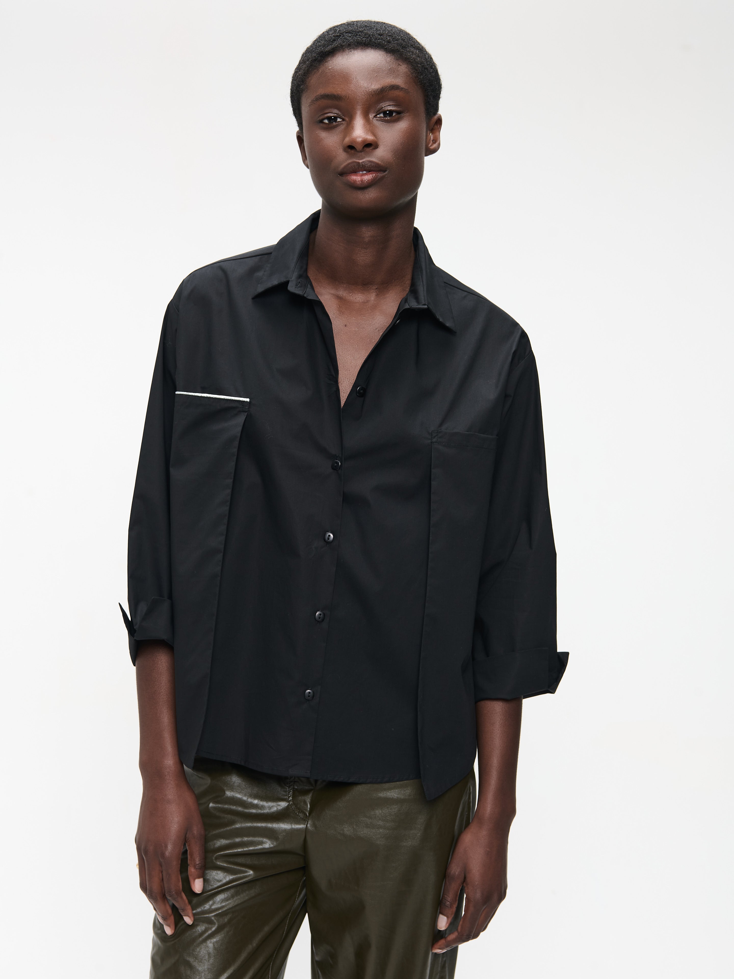 An elegant essential with a relaxed edge, the Limone blouse is crafted from crisp 100% cotton for a clean and breathable feel. Its boxy silhouette, open collar and cropped sleeves offer a contemporary twist to the classic shirt. Perfect for effortless office looks or dressed-down weekends.