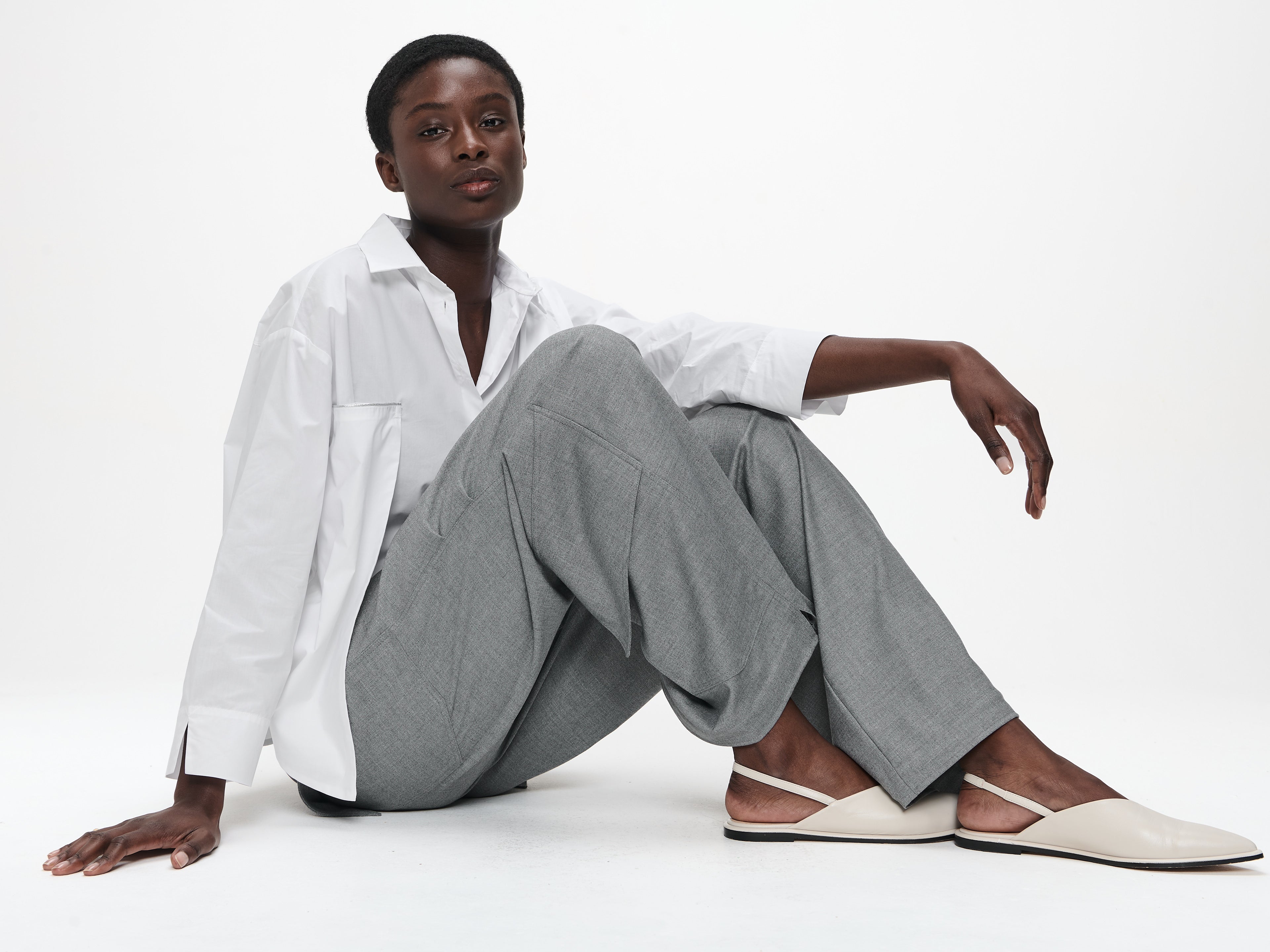 Blending casual ease with tailored style, the Stasi Poplin Hooded Blouse is a standout basic with a twist. The sharp shirt collar seamlessly extends into a wide hood with drawstrings, while the relaxed fit and crisp cotton blend make it a go-to for understated cool. Whether worn tucked into trousers or loose over denim, it’s effortlessly modern.