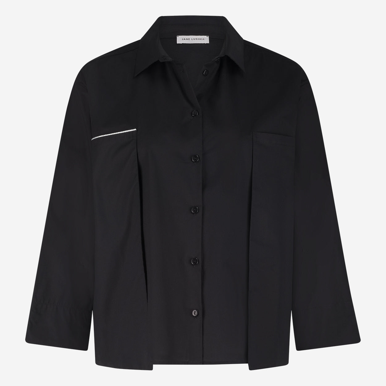 Designed for sophisticated ease, the Veronica Blouse Technical Jersey combines structure and softness in a clean silhouette. Featuring a modern collar design with a softly draped hood detail, this blouse is cut from smooth technical jersey for a polished look and comfortable fit. It closes with tonal buttons and includes discreet side pockets — a minimal yet functional piece for versatile styling.