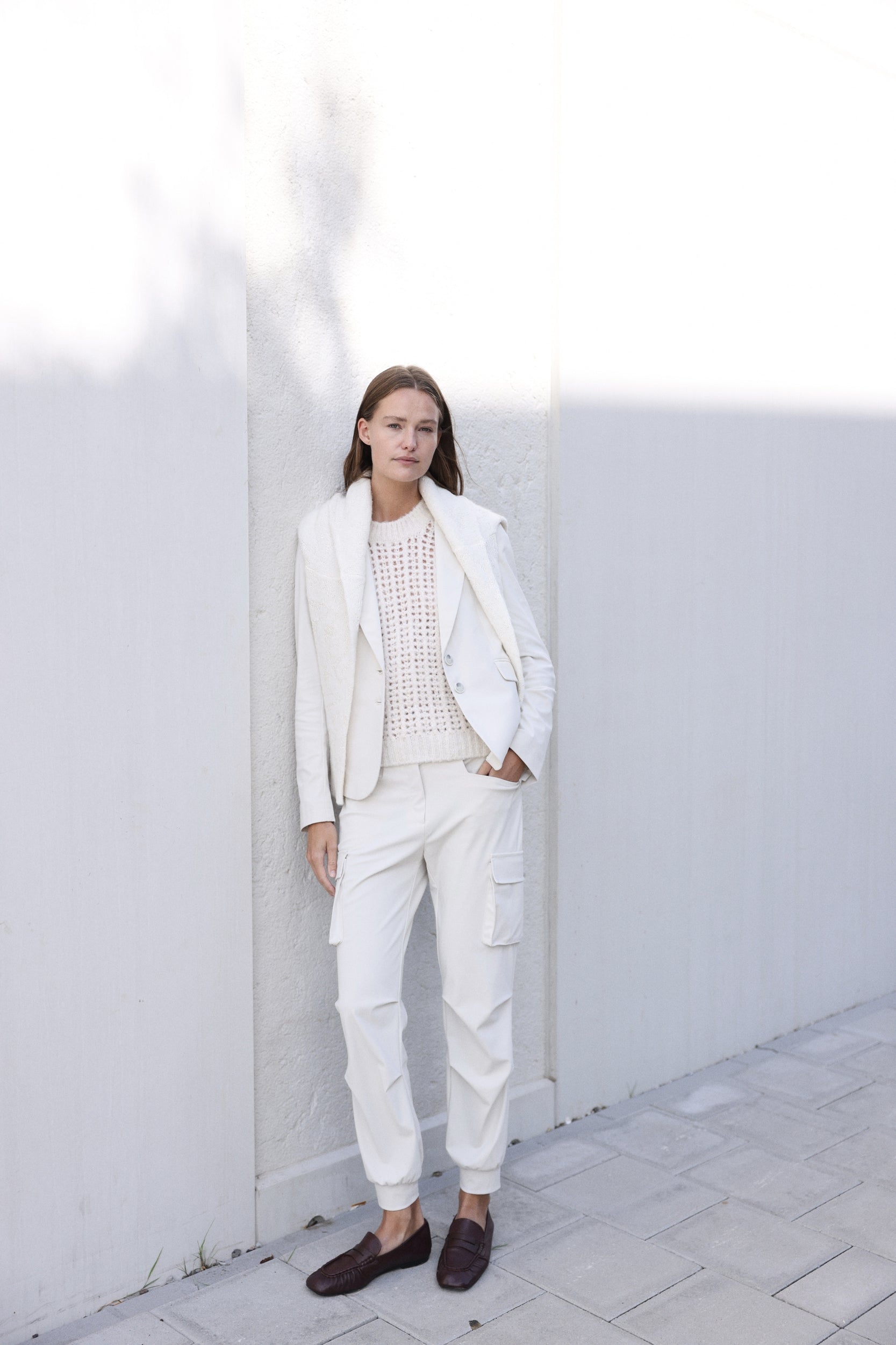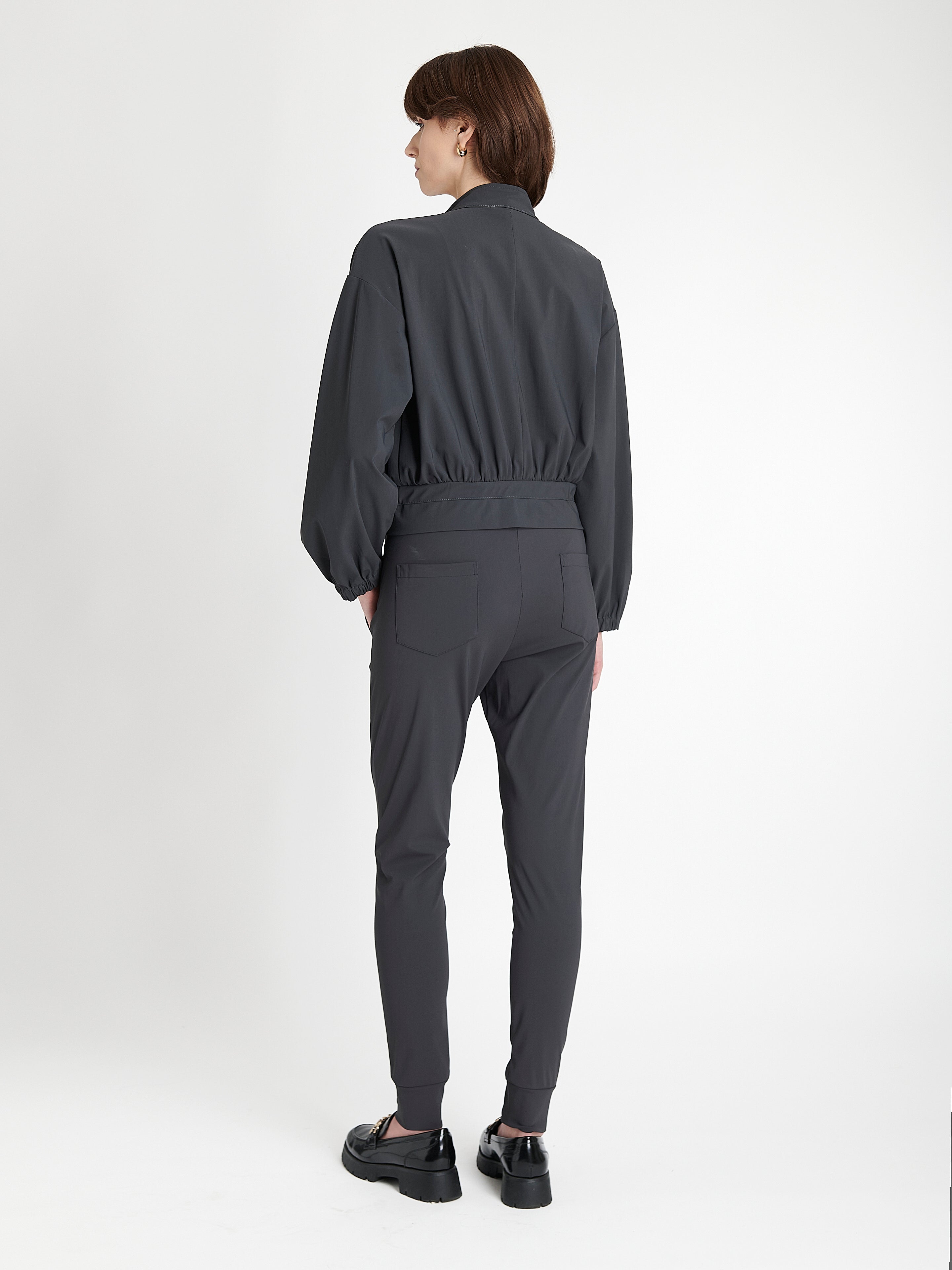 The Sharon jacket (UFC125146) is a sleek essential with an athletic touch. Made from brushed technical jersey, it features a soft, slightly velvety surface that feels luxurious yet functional. The minimal collar, full-zip front, and elasticated cuffs and hem bring a clean, modern silhouette that's easy to wear and easy to style. Whether paired with matching pants or layered over a dress, Sharon adds effortless edge.