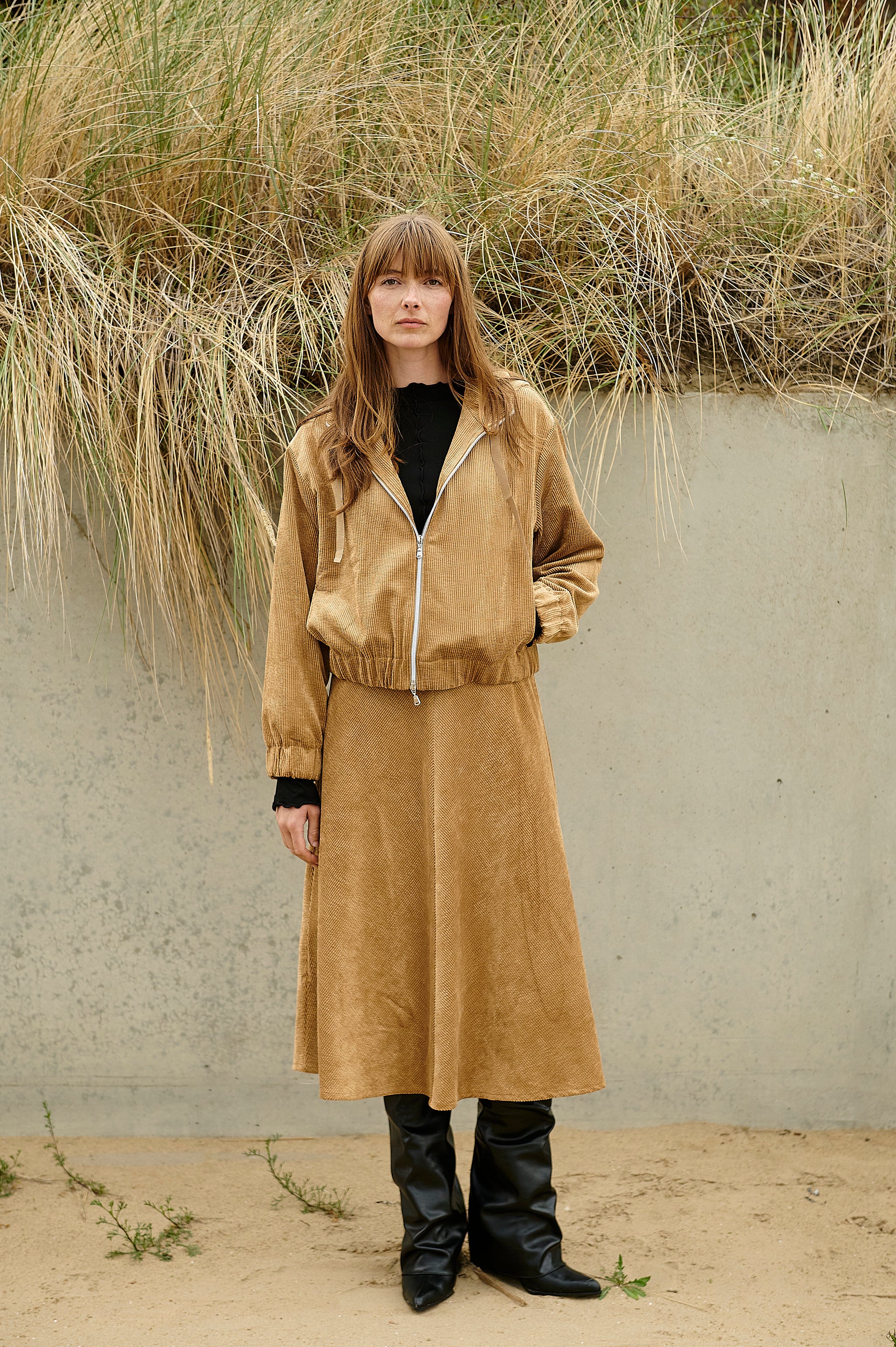 Effortlessly cool and understated, the Golia jeans jacket is a versatile piece that complements any off-duty look. Crafted from a soft stretch corduroy blend, it features a relaxed silhouette with a drawstring hood, front zip closure, and elasticated cuffs. Whether paired with matching pants or layered over a dress, this jacket adds a modern touch to your wardrobe.