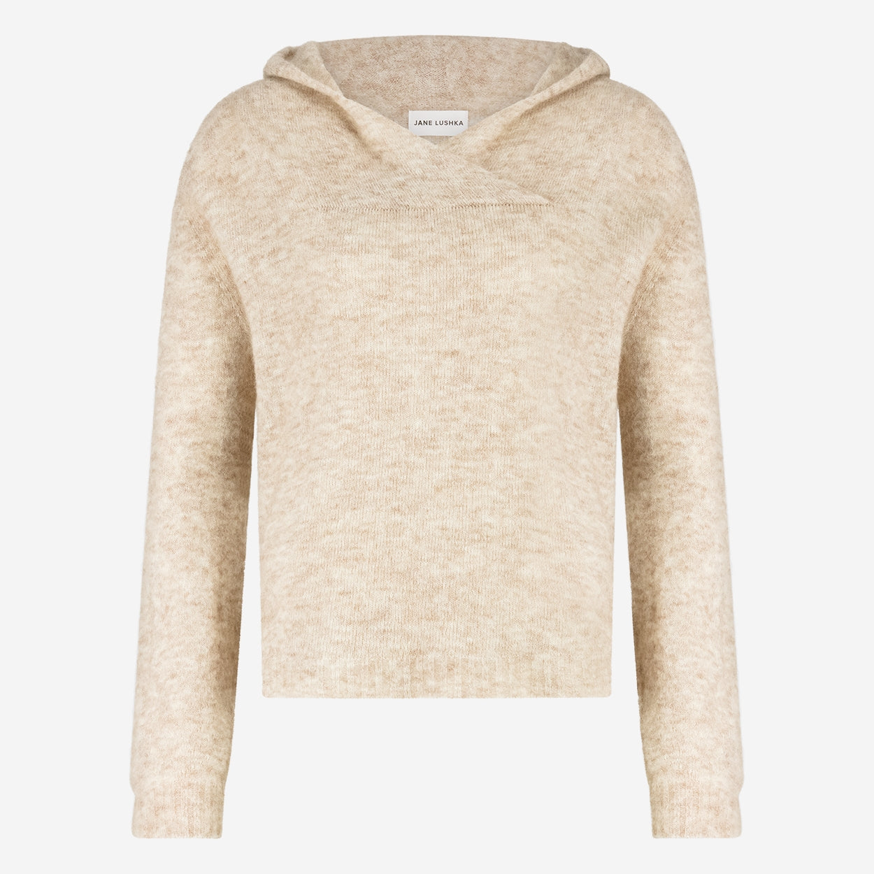 This Hoodie pullover H22167 is a cozy and relaxed knit that blends comfort with effortless style. With its soft hooded neckline and slightly oversized silhouette, this pullover is perfect for layering on cool autumn and winter days. The casual design is elevated by its luxurious wool-alpaca blend, offering warmth without compromising on elegance.