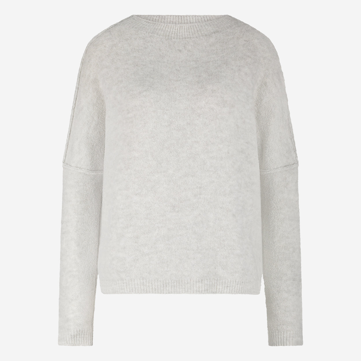 Shiny Pullover 1034 brings a unique twist to everyday knitwear with its semi-sheer open-knit structure and subtly shimmering yarns. The pullover combines a boxy silhouette with a slightly shorter length, making it a great match for both high-waisted trousers and skirts. Its soft off-white shade adds a clean and cozy finish to your seasonal wardrobe.