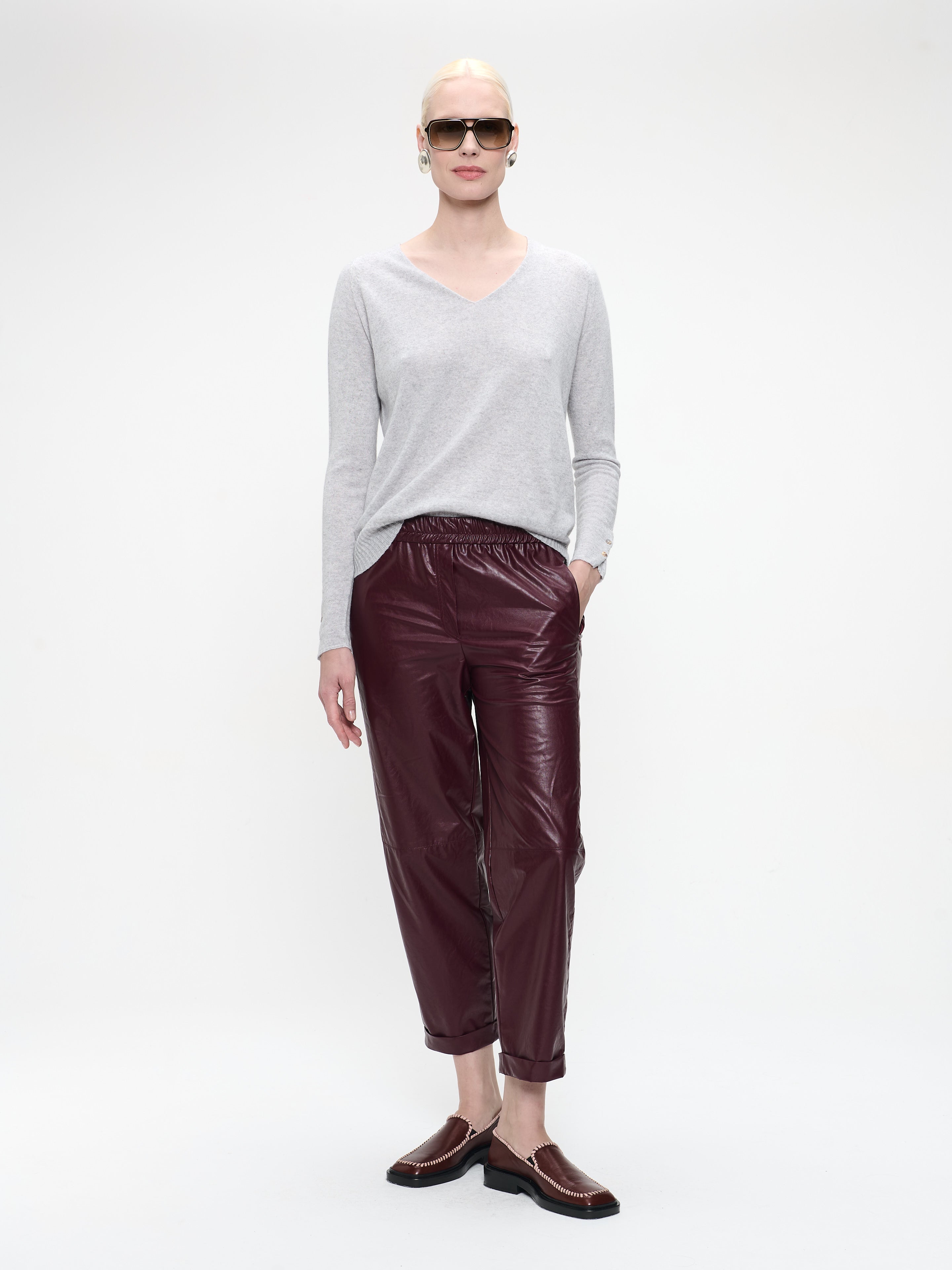 • Relaxed silhouette with deep V-neck