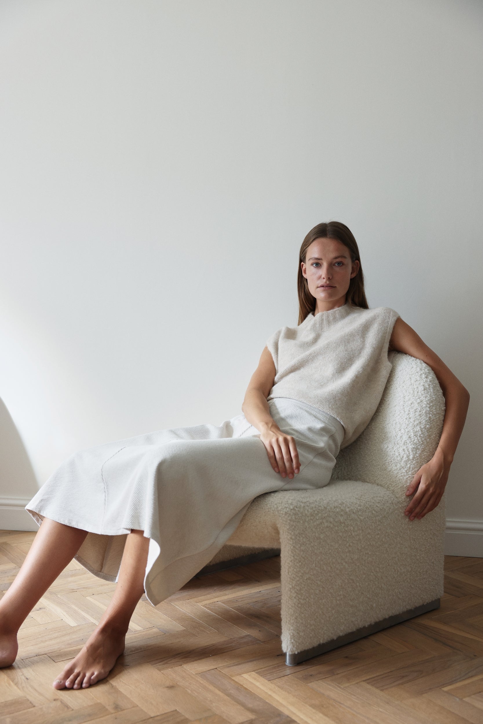 The Shiny Vest 1008 from Jane Lushka is a lightweight and breathable layering piece, perfect for transitional styling. Its open-knit structure and sleeveless silhouette give it a modern edge, while the soft touch of wool and viscose ensures all-day comfort. Wear it solo or layered over a blouse for a chic and contemporary look.