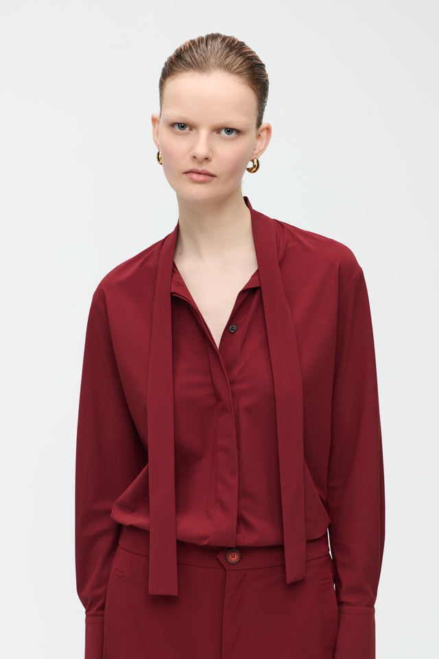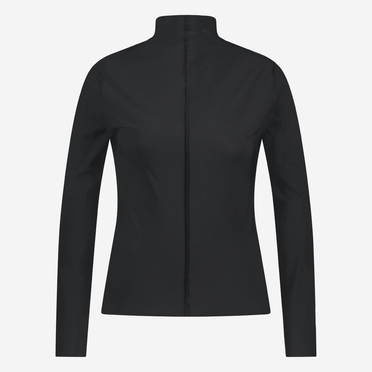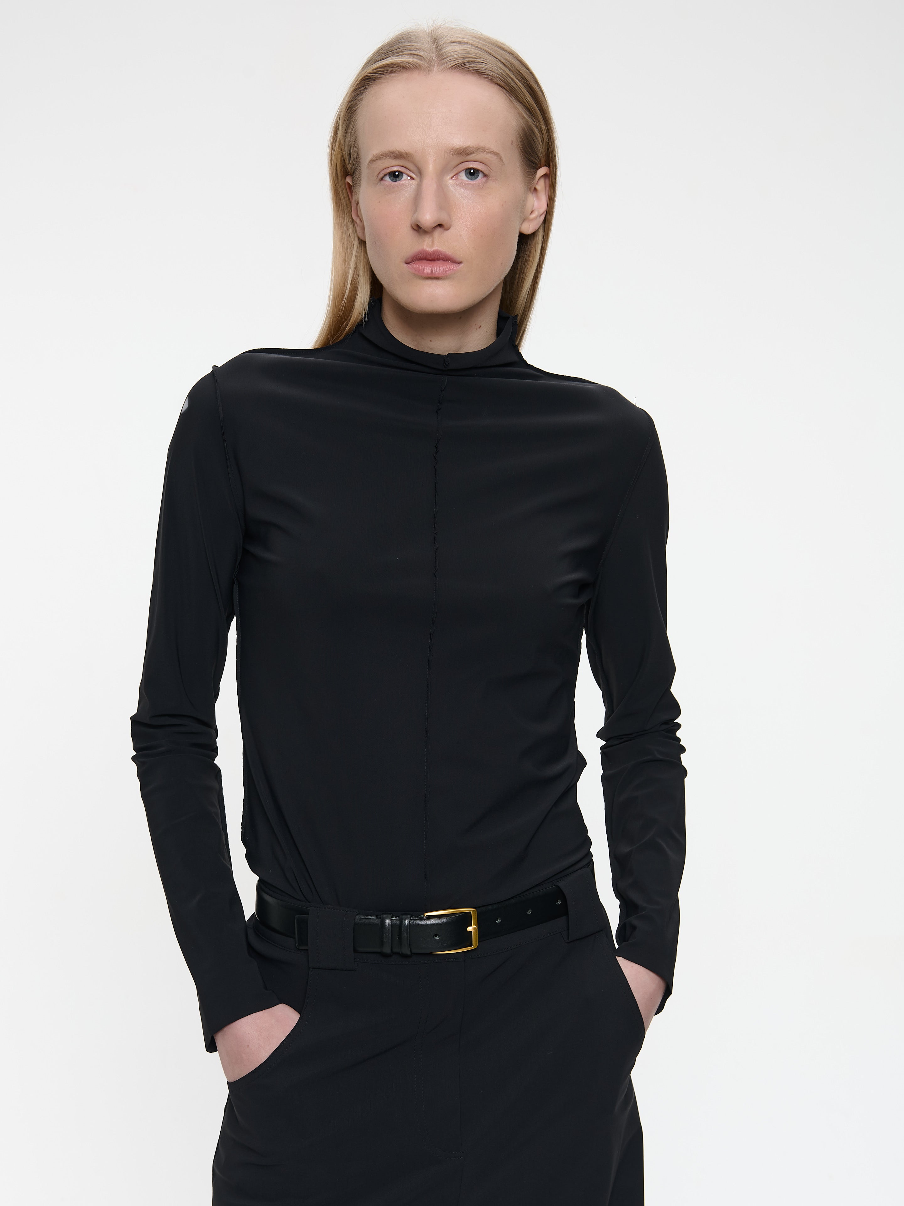 Zara Top, crafted from high-tech jersey. Featuring a semi-raised neckline, this top offers a sleek and modern look, perfect for both professional and casual settings. Its innovative fabric ensures comfort and style all day long.