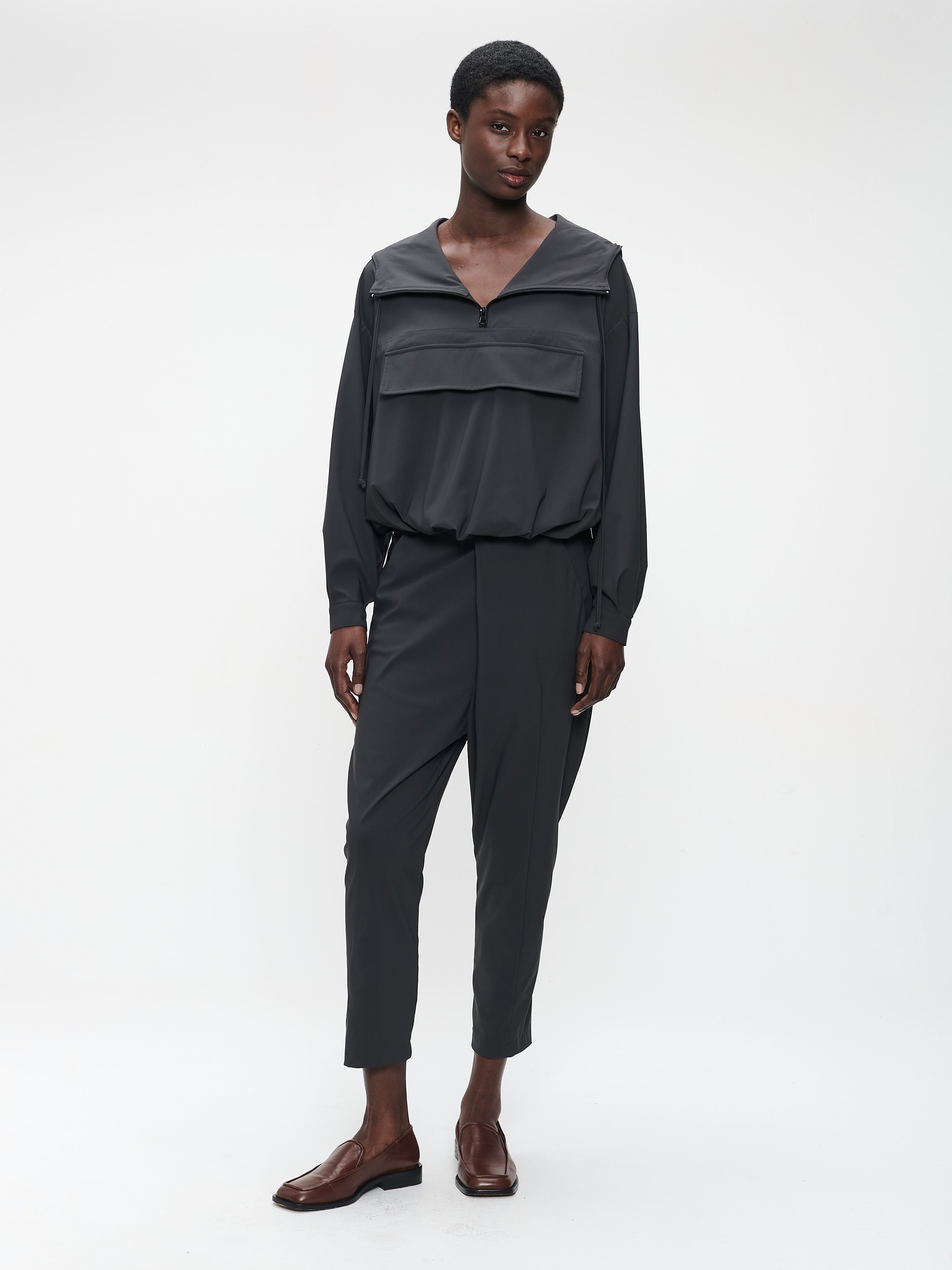 Designed for sophisticated ease, the Veronica Blouse Technical Jersey combines structure and softness in a clean silhouette. Featuring a modern collar design with a softly draped hood detail, this blouse is cut from smooth technical jersey for a polished look and comfortable fit. It closes with tonal buttons and includes discreet side pockets — a minimal yet functional piece for versatile styling.