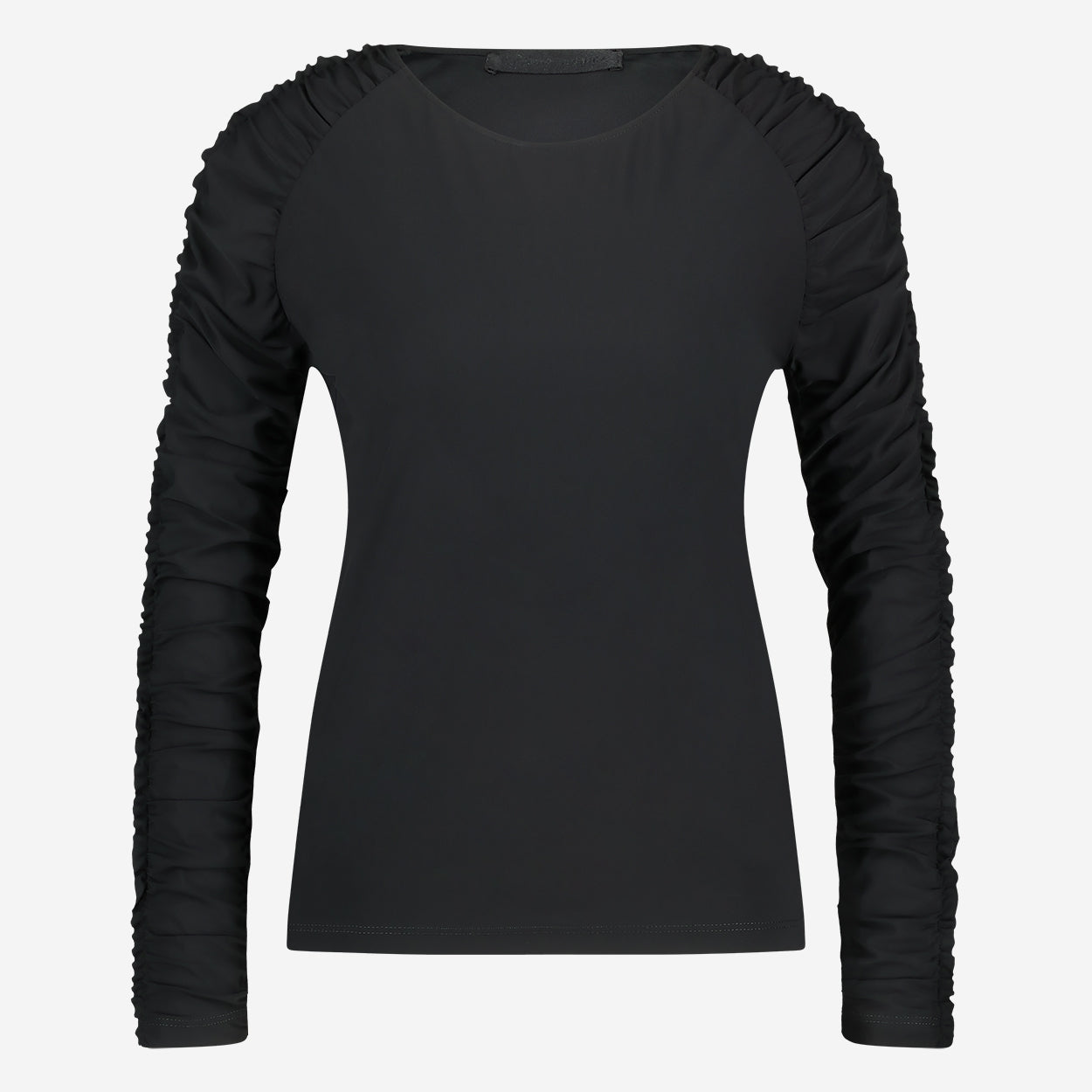 Carlin Top: Elevate your wardrobe with the Carlin Studio Top, crafted from high-tech jersey. This top features a slim silhouette and rolled-up long sleeves, combining modern style with comfort.Â
