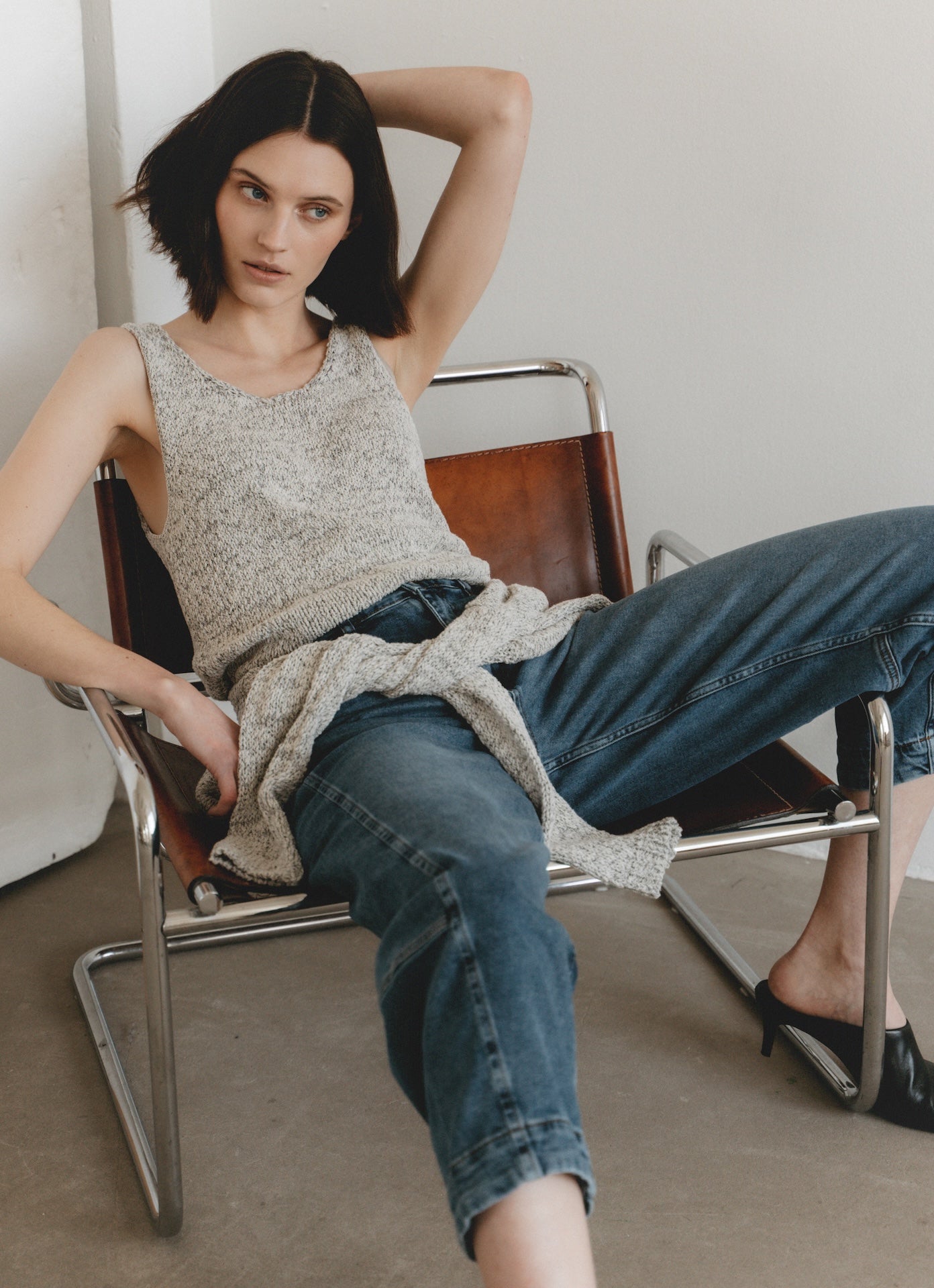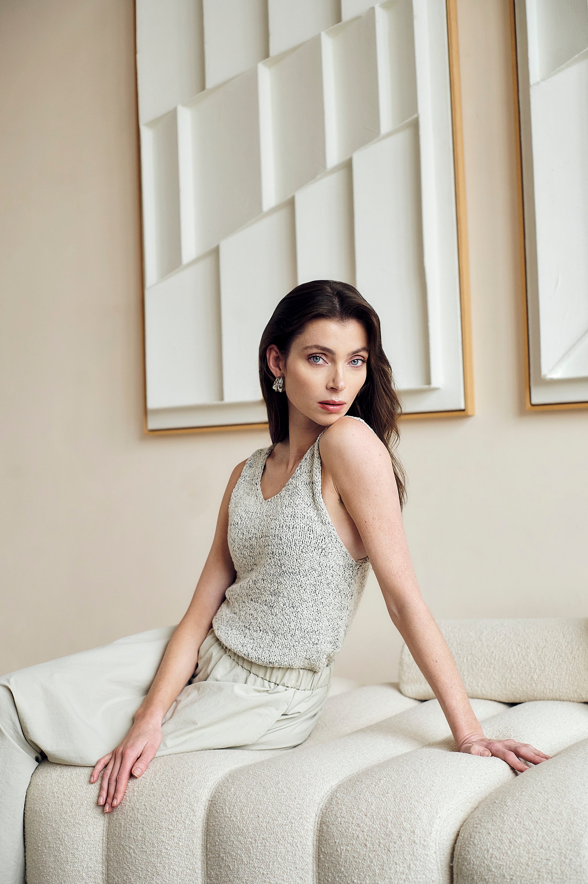 The Top Cotton E26119 by Jane Lushka combines simplicity and texture in a timeless design. Made in Italy from a soft cotton blend, this sleeveless knit features a relaxed silhouette and a natural melange effect that adds depth to its neutral tone. Lightweight and versatile, it’s perfect for layering or wearing solo during warm days.