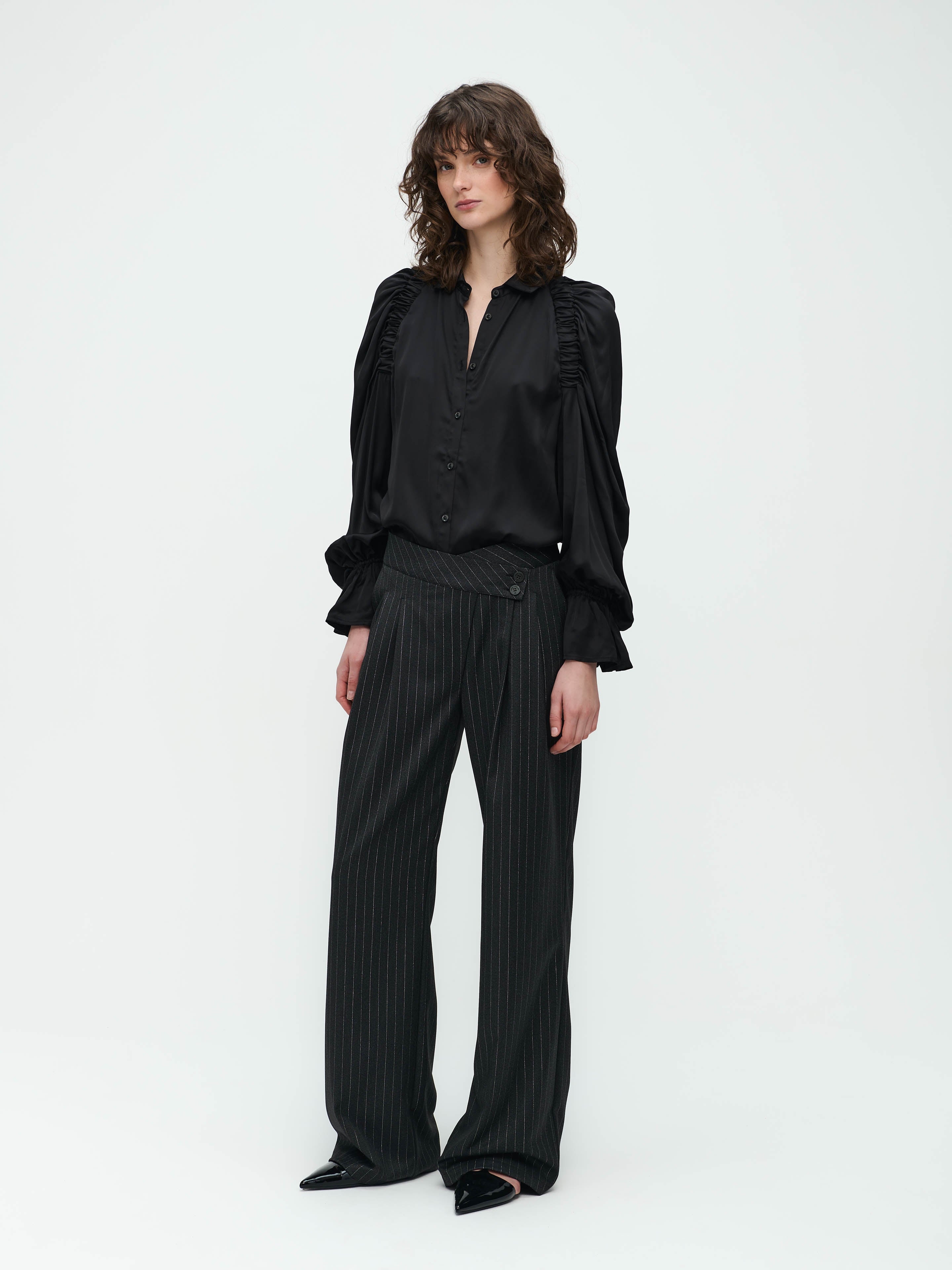Step into the spotlight with the Mima Blouse, a stunning piece crafted from shiny viscose that catches the light with every move. This blouse combines a sleek, fashion-forward style with the luxurious feel of viscose, making it a perfect choice for both day and night occasions.