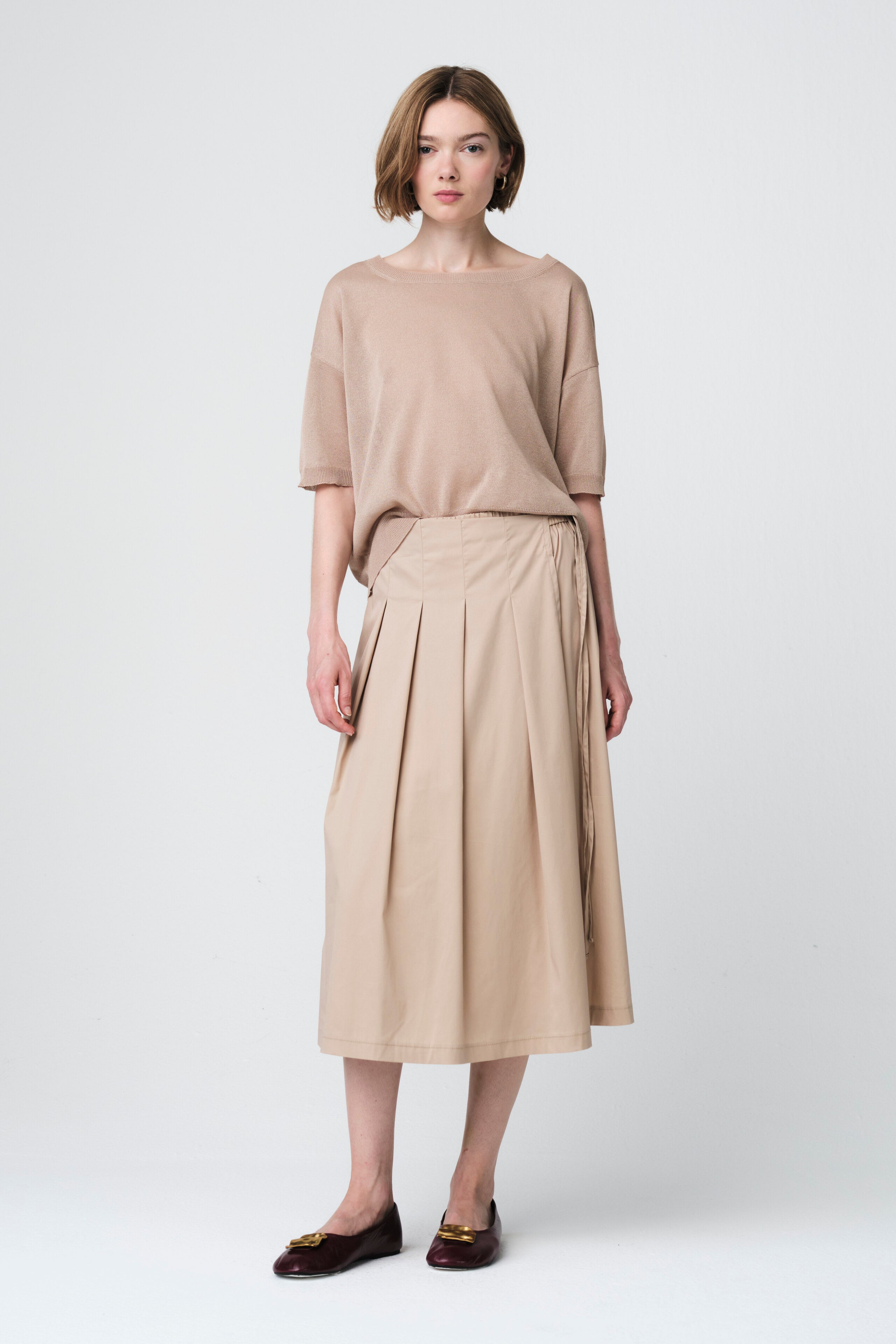 The Fine Viscose Top by Jane Lushka embodies soft sophistication and modern simplicity. Crafted in Italy from a fine viscose-polyester blend, this lightweight knit offers a fluid drape and an elegant sheen. The relaxed silhouette, short sleeves, and minimalist design make it a timeless piece — perfect for creating effortlessly chic looks from day to night.