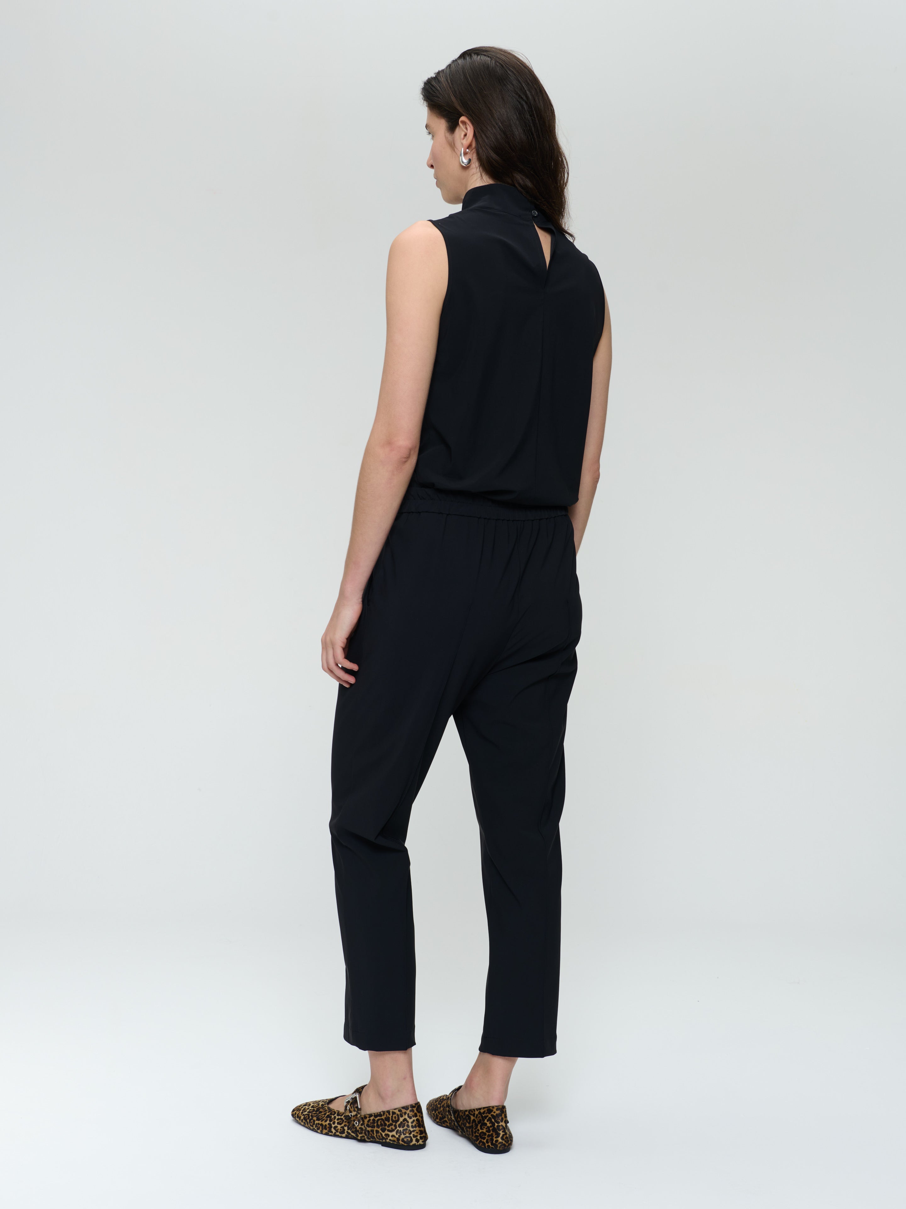 The Naomi Stretch Technical Jersey Top by Jane Lushka redefines modern elegance with a sleek, sculptural silhouette. Crafted in Bulgaria from the brand’s signature technical stretch jersey, it combines sophistication with ease. The sleeveless design features a soft stand-up collar with a subtle asymmetric cutout, creating a contemporary, feminine look. A versatile essential that pairs effortlessly with tailored trousers or wide-leg pants for a refined, confident style.